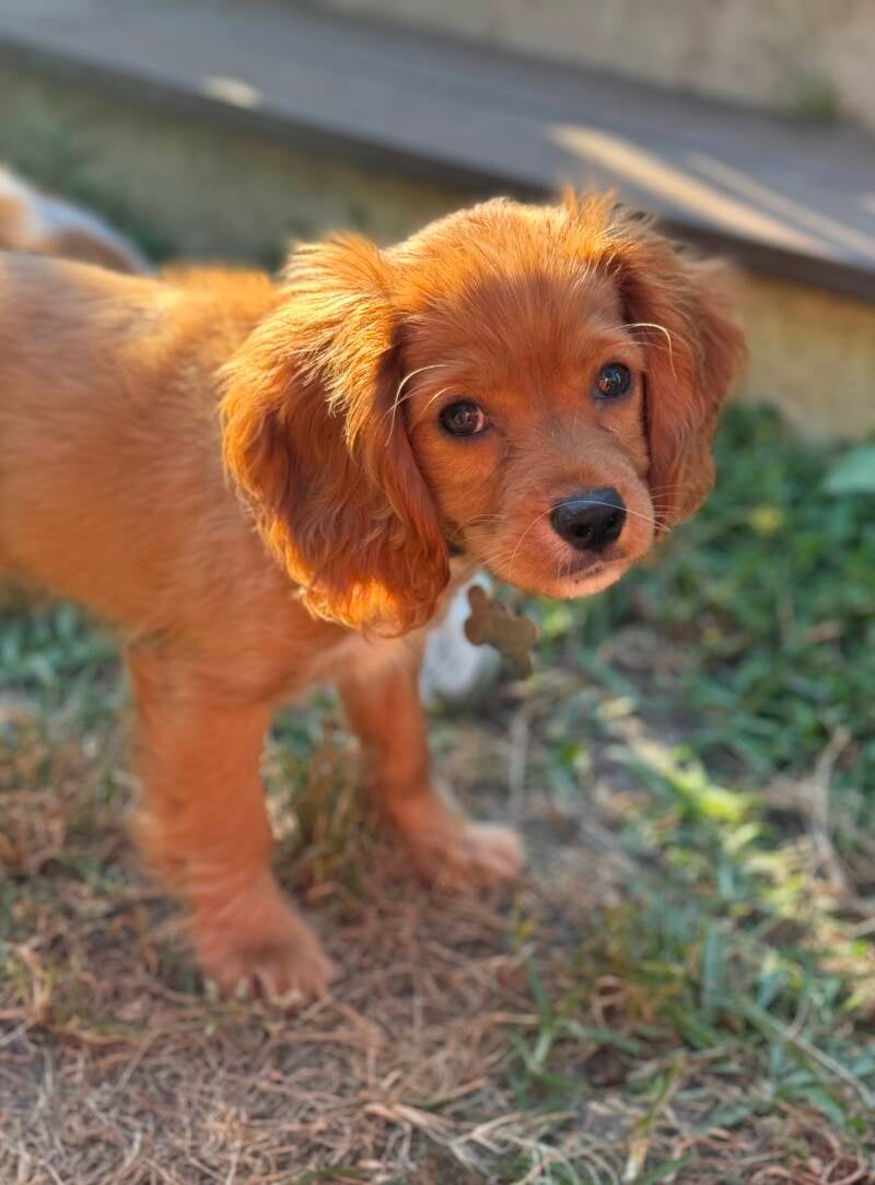 This is our one year old Cockalier daddy. He is an adventurous ball of energy. A little cautious at new things, he adapts quickly. He is very loving and strives to please.